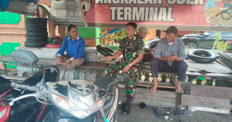 DEMAK - Dalam rangka mempererat silaturahmi dan menjaga keamanan wilayah binaan, Babinsa Koramil 01/Demak Kota Jajaran Kodim 0716/Demak Serda Saefudin melaksanakan kegiatan komunikasi sosial (Komsos) bersama para tukang ojek yang berlangsung di pos ojek Kadilangu, Jumat (09/01/2026).