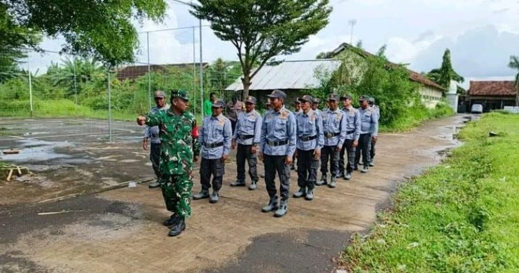 DEMAK - Babinsa Koramil 05/Mijen Kodim 0716/Demak Sertu M.Sokhib, memberikan pelatihan kegiatan latihan dasar Peraturan Baris-Berbaris (PBB) kepada anggota Perlindungan Masyarakat (Linmas) di Lapangan Desa Bermi Kecamatan Mijen, Kamis (22/01/2026).