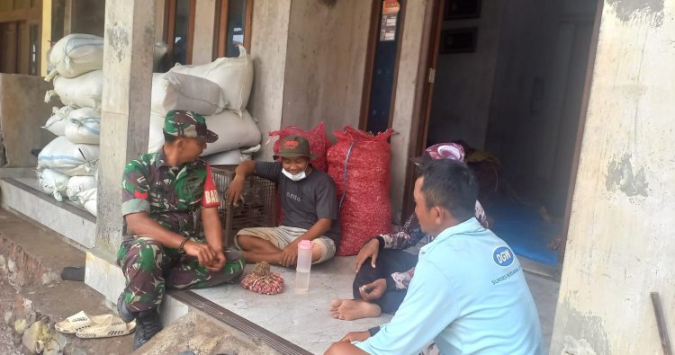 DEMAK - Babinsa Koramil 05/Mijen Jajaran Kodim 0716/Demak Kopka Budi, melaksanakan Komunikasi Sosial (Komsos) dengan kelompok petani bawang merah di Desa Ngelokulon Kecamatan Mijen, Rabu (28/01/2026).