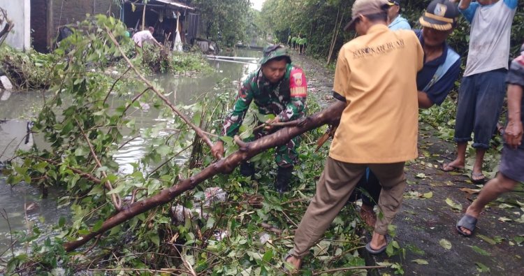 DEMAK – Karya Bakti dalam rangka susur sungai dengan membersihkan tumpukan sampah dan ranting serta semak belukar dilakukan Babinsa Koramil 06/Wedung Kodim 0716/Demak Kopda Hariyanto di Desa Jungpasir Kecamatan Wedung, Selasa (20/01/2026).