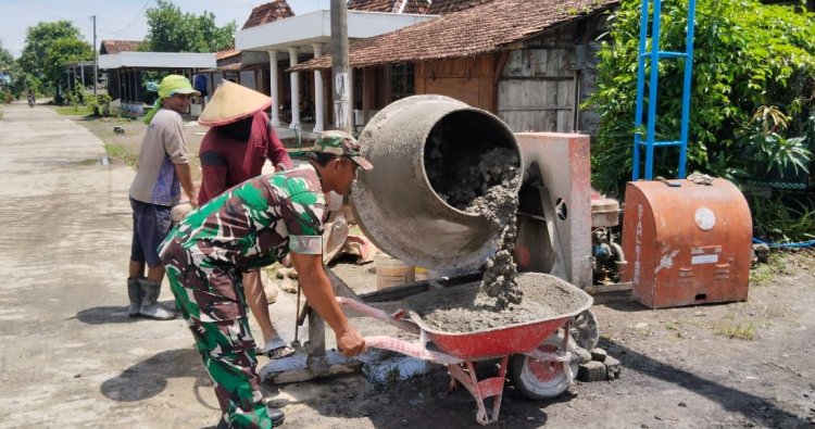 DEMAK – Babinsa Koramil 10/Guntur Kodim 0716/Demak Sertu Moh Ali dan Warga Masyarakat melaksanakan Kegiatan Karya Bakti Pengecoran jalan di Desa Tlogoweru, Kec. Guntur Kabupaten Demak, Rabu (19/11/2025).