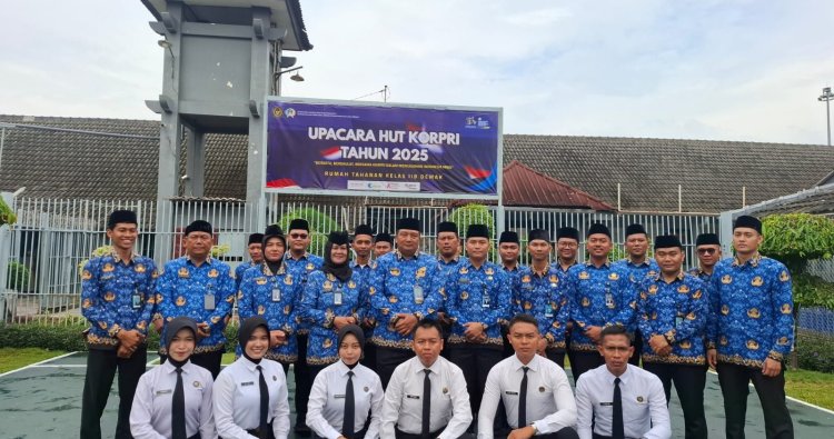 Demak, Senin 1 Desember 2025 – Rumah Tahanan Negara (Rutan) Kelas IIB Demak melaksanakan upacara peringatan Hari Ulang Tahun Korps Pegawai Republik Indonesia (KORPRI) ke-54 di halaman rutan. Upacara diikuti oleh seluruh pegawai Rutan Demak serta perwakilan warga binaan yang turut menyaksikan jalannya kegiatan dengan tertib. Rangkaian upacara berjalan khidmat, mulai dari pengibaran bendera merah putih, pembacaan visi KORPRI, hingga pengucapan Panca Prasetya KORPRI yang menjadi momen peneguhan komitmen pengabdian para ASN.