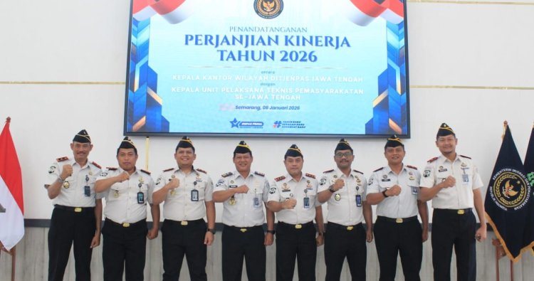 Rumah Tahanan Negara (Rutan) Kelas IIB Demak pada Selasa, 06 Januari 2026, turut hadir dalam kegiatan Penandatanganan Perjanjian Kinerja Tahun 2026 antara Kepala Kantor Wilayah Direktorat Jenderal Pemasyarakatan (Kanwil Ditjenpas) Jawa Tengah dengan seluruh Kepala Unit Pelaksana Teknis (UPT) Pemasyarakatan se-Jawa Tengah. Kegiatan yang berlangsung di Lembaga Pemasyarakatan Kelas I Semarang ini menjadi momentum awal tahun untuk menyatukan komitmen dan langkah strategis dalam mewujudkan kinerja pemasyarakatan yang profesional, akuntabel, dan berintegritas.