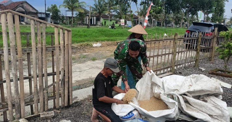 DEMAK – Babinsa Koramil 06/Wedung Jajaran Kodim 0716/Demak Serda Zeppy Nurdiansyah melaksanakan pendampingan kepada petani dalam menjemur padi milik bapak Rasdi yang terletak di Desa Ngawen Kecamatan Wedung, Senin (02/02/2026).
